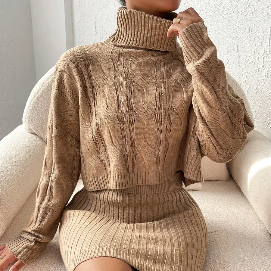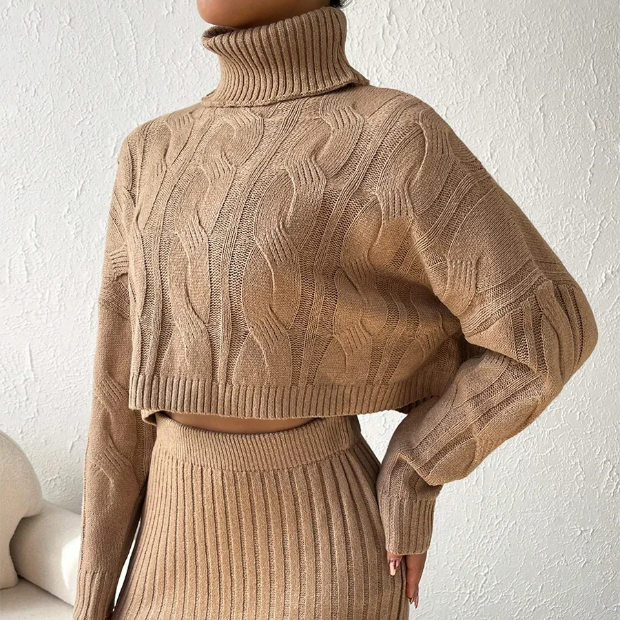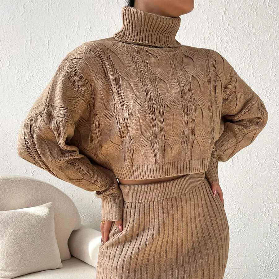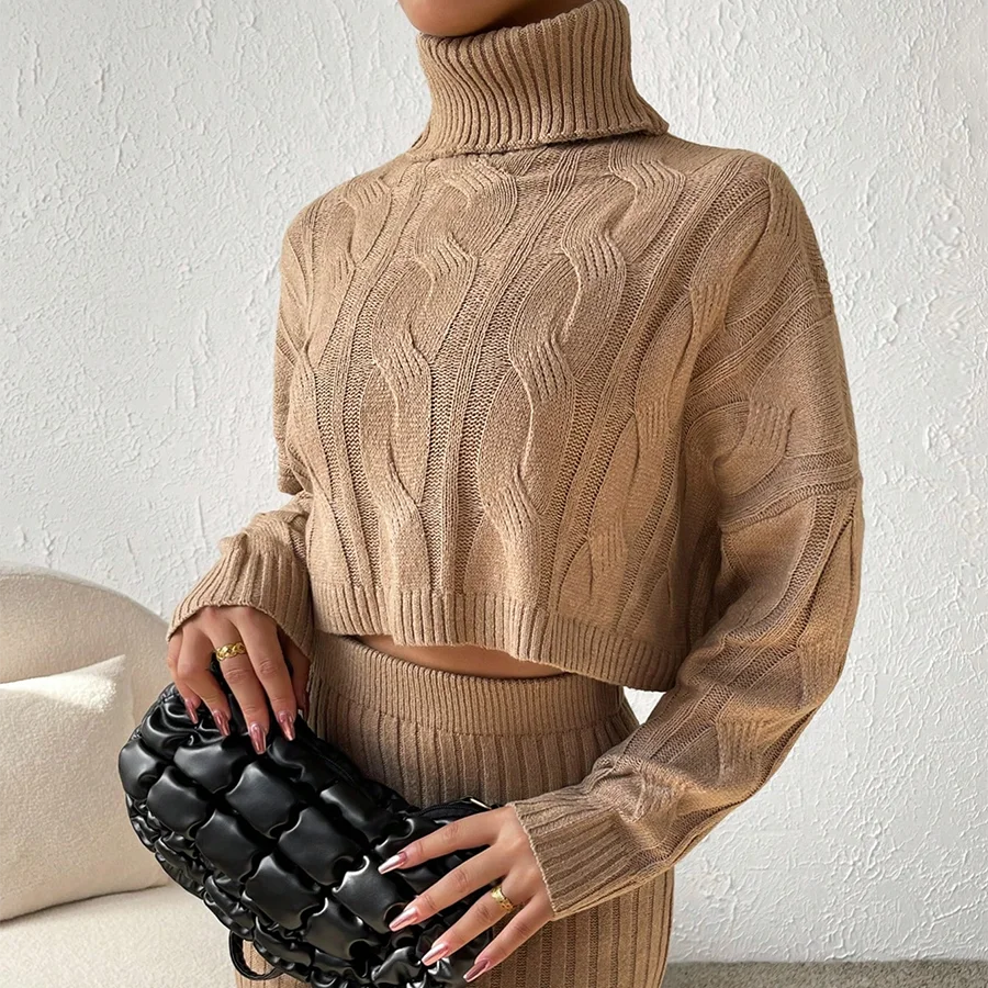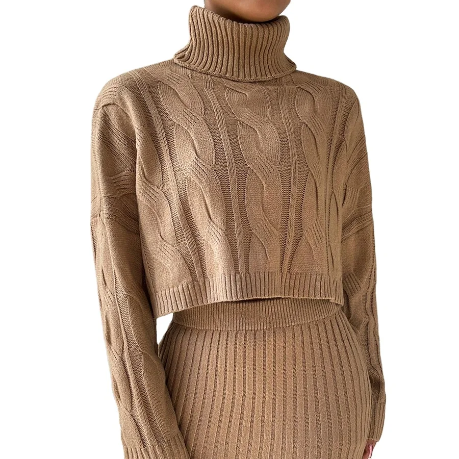 Women's Dress Set Wholesale Custom Logo Sweater for Women Long Sleeve Turtleneck Ladies Clothes Knitted Pullover Sweater Women
